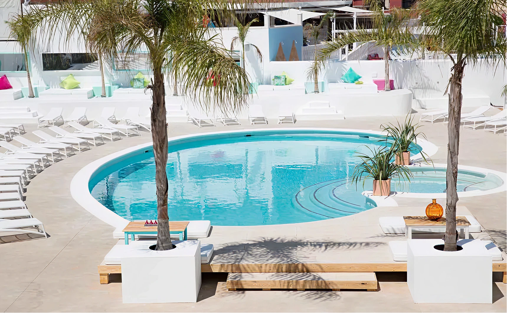 Habitaciones normales y una piscina grande con DJ además de camas y butacas alrededor, si pides algo te lo llevan a tu butaca o a tu cama, el personal es muy amable y atento. En general las instalaciones están bien.